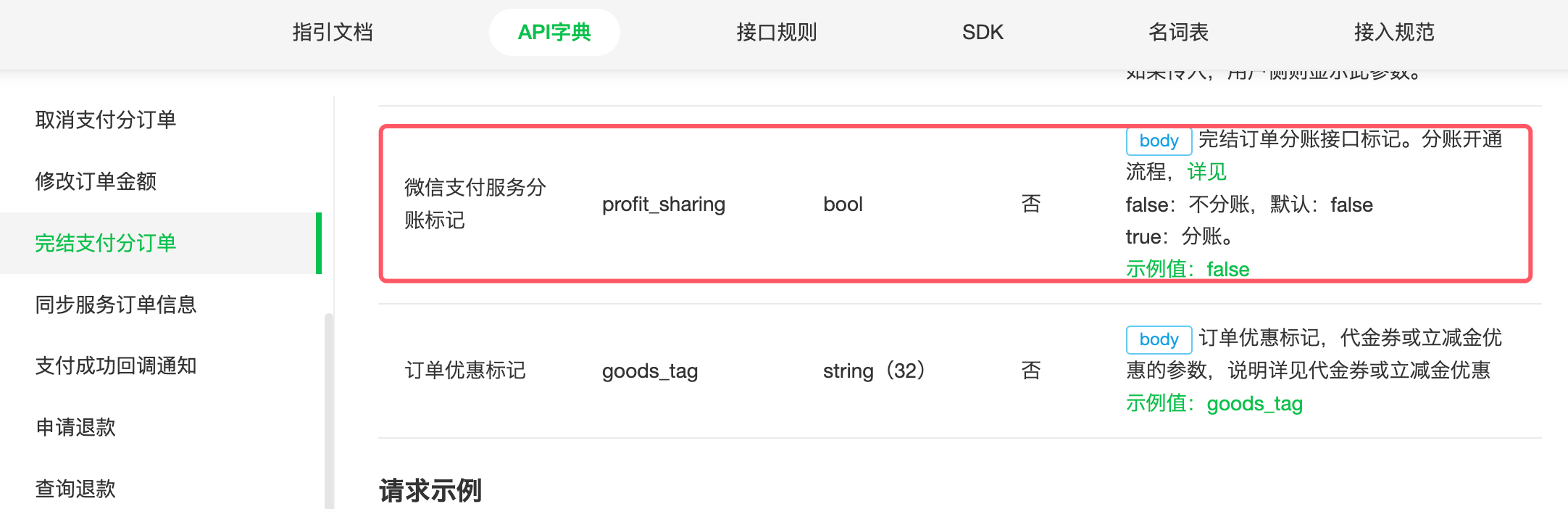 完结订单的时候不是有分账标识的参数?你咋看的文档