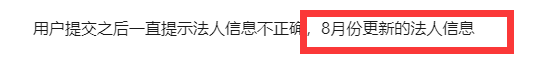 用户提交之后一直提示法人信息不正确,8月份更新的法人信息