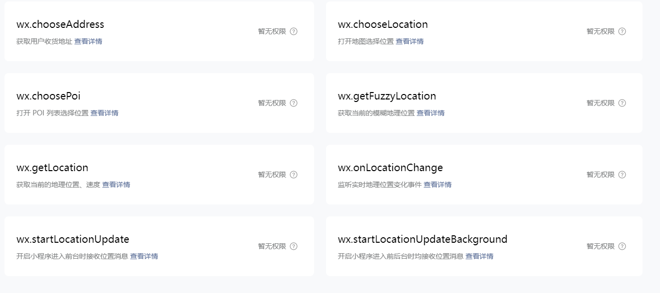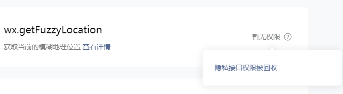 看看暂无权限的提示是啥,后台查看是否有【关于小程序服务能力封禁的通知】,重新更新或完善《用户隐私保护指引》,或者提审代码的时候更新《用户隐私保护指引》