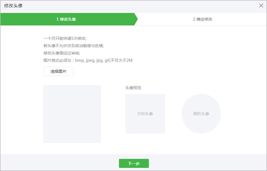 3)圆头像和方头像无法分开设置,头像上传后,系统会对同一头像自动拉取圆形头像和方形头像。
