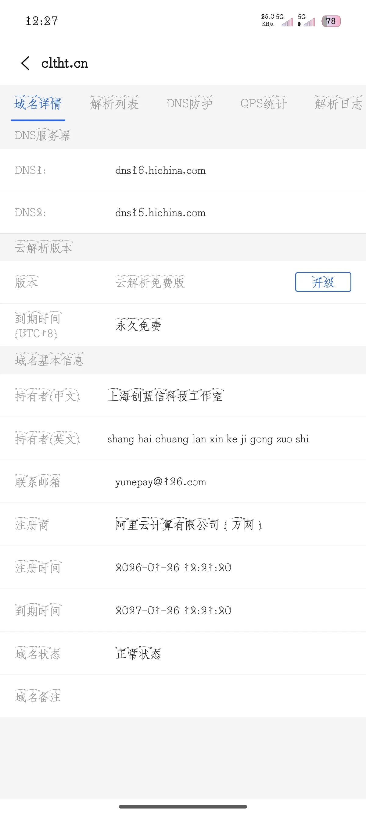 尊敬的官方大大,这个是我公司昨天注册的新的域名还没有开始使用被拦截,麻烦恢复,是在阿里云万网注册的新域名还没有解析使用,正在提交备按就被拦截了cltht.cn