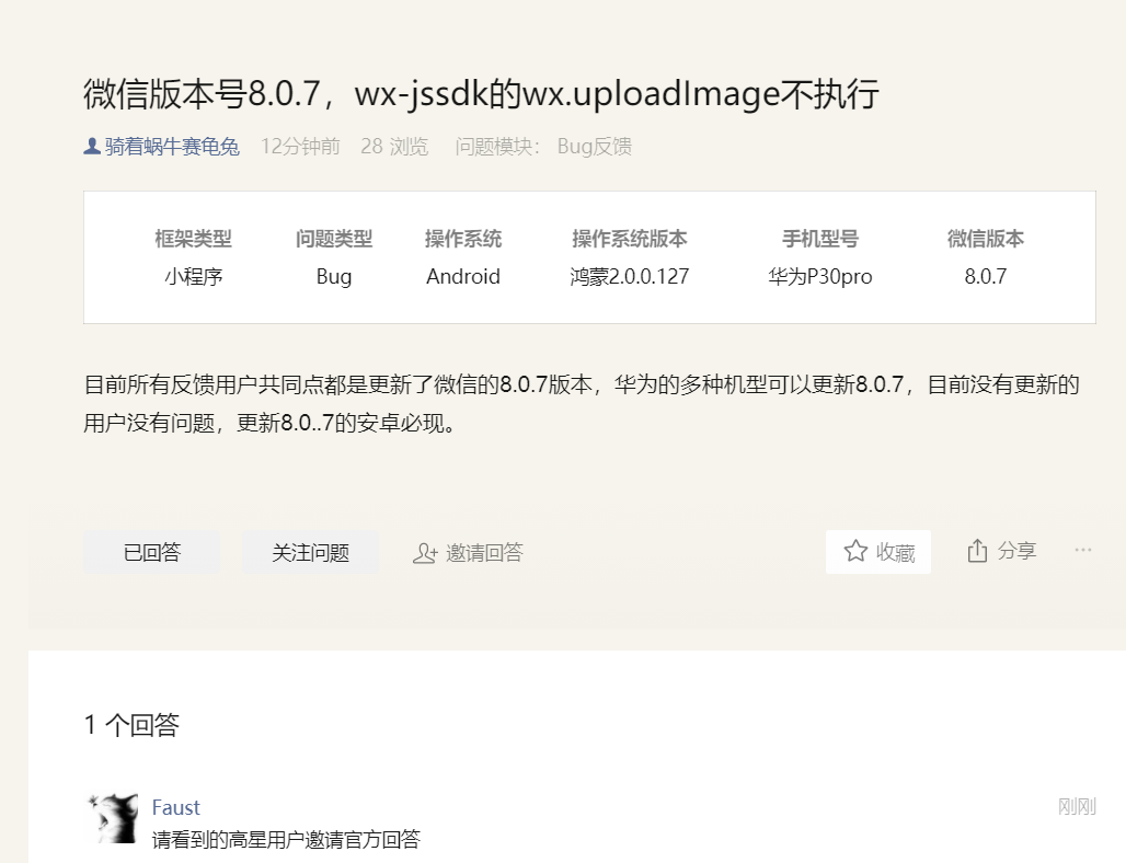 8.0.7新版本有bug,临时可以通过在wx.uploadImage的时候设置isShowProgressTips为1来规避,后续我们会尽快修复问题。