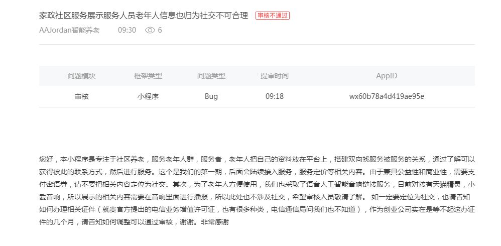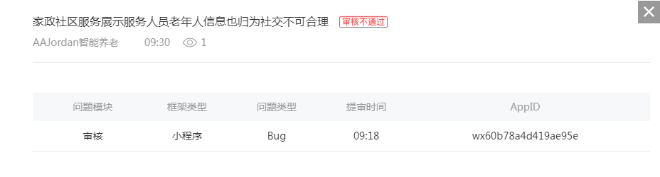 | 小程序 | Bug | 2018-08-10 | wx60b78a4d419ae95e |