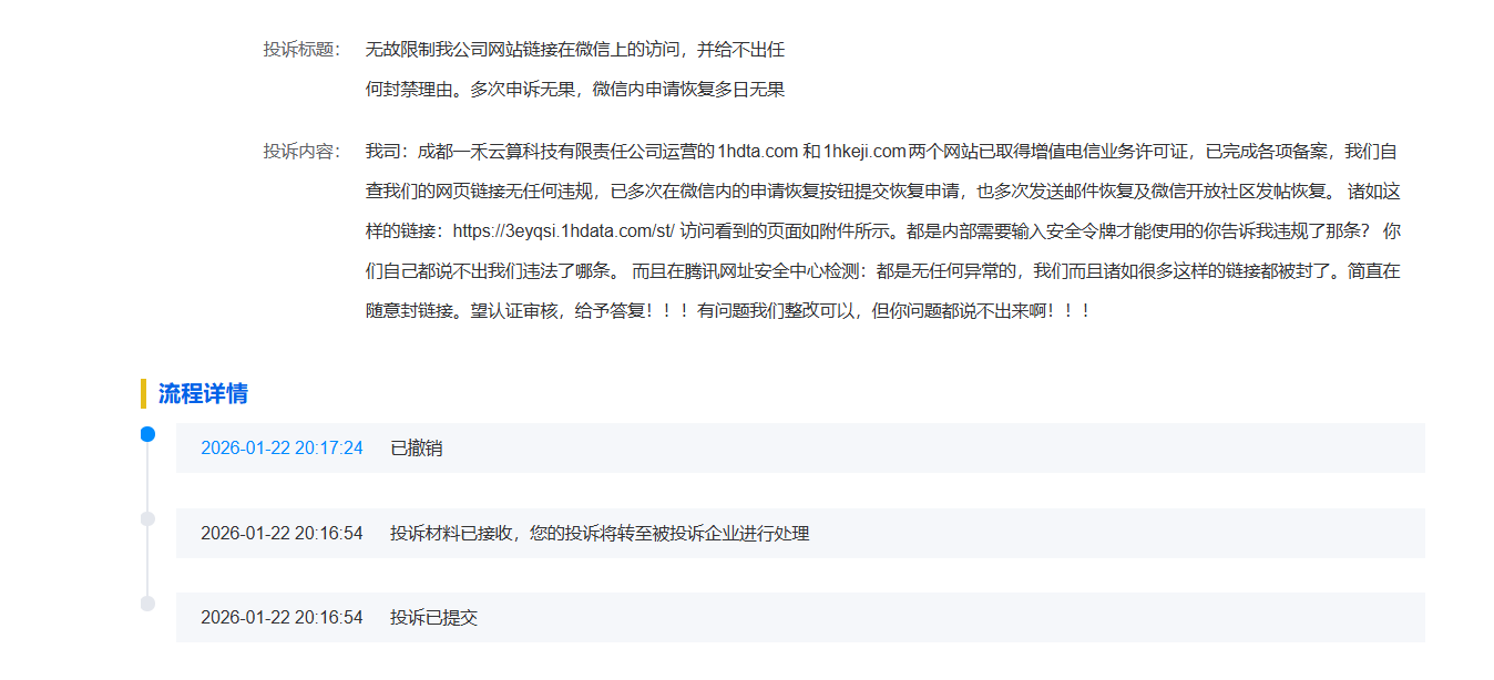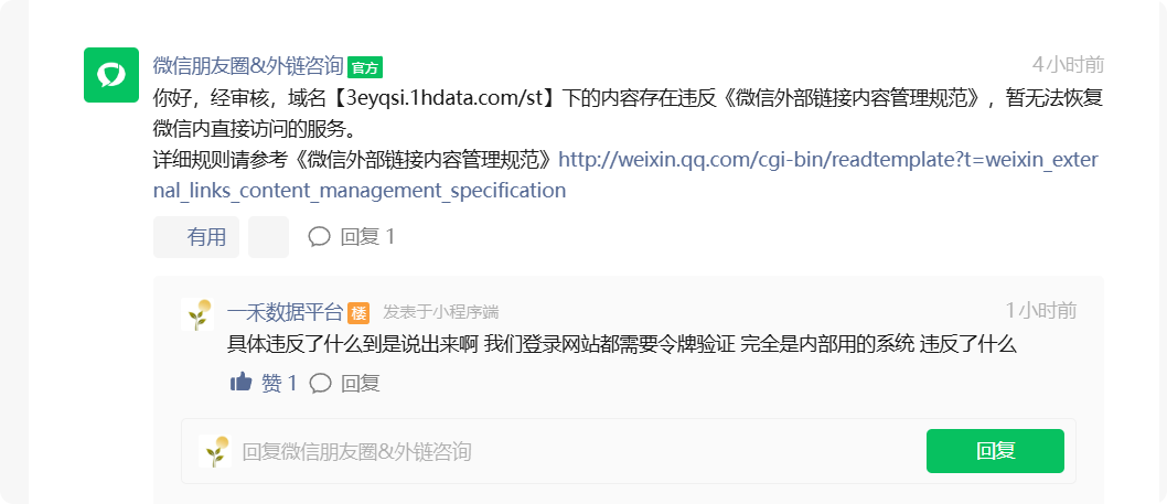 本公司已取得增值电信业务经营许可证,ICP、公安部都是备案了的,但旗下诸如https://3eyqsi.1hdata.com/st/的很多链接被禁止访问