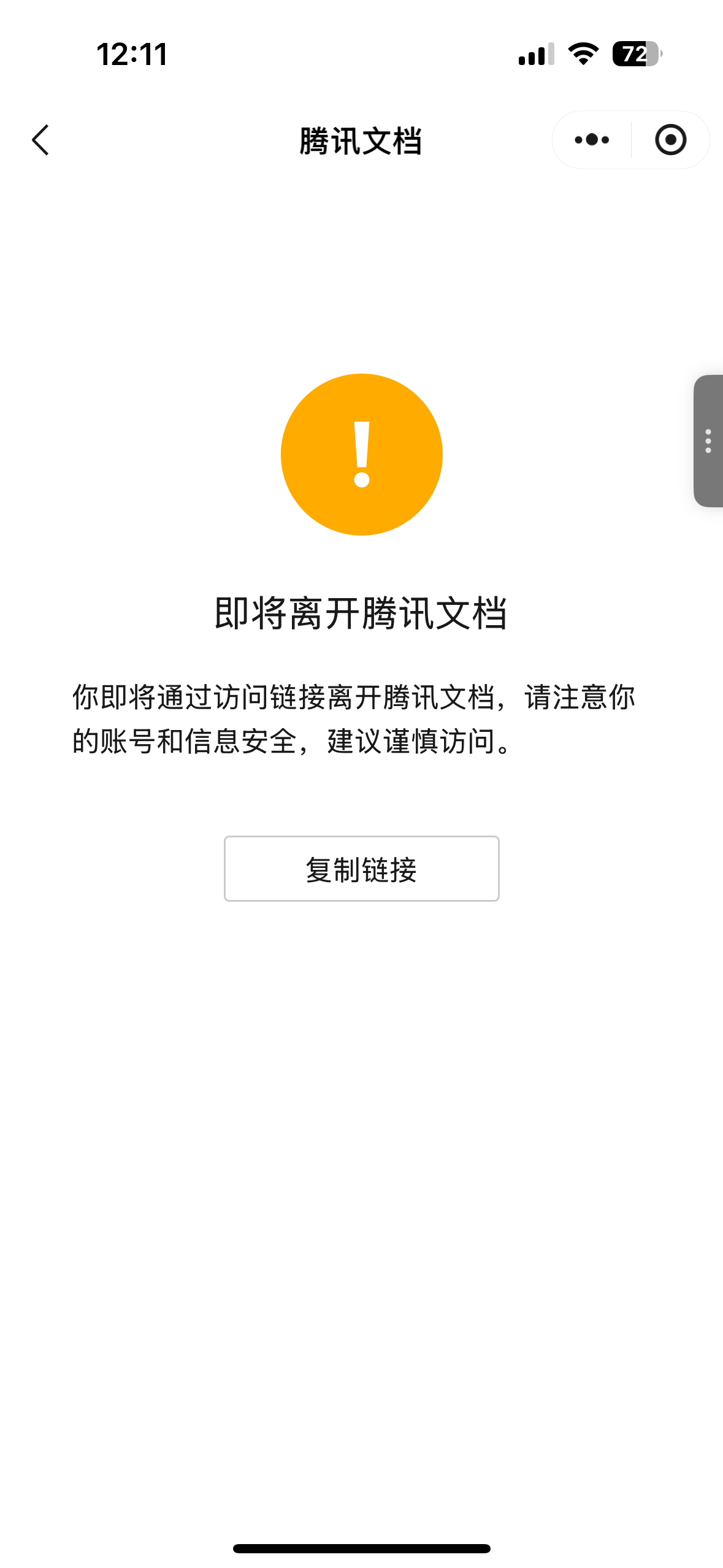 我在腾讯文档中给文章内容添加了一个篇公众号文章的链接。但我在手机微信上用腾讯文档小程序浏览我的文章时,点击链接,却无法跳转到公众号文章,只看到一个复制链接地址的按钮