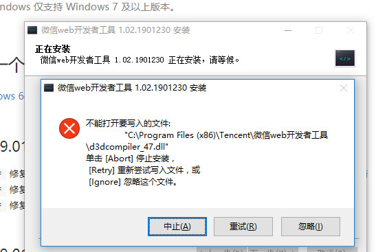 一般退出正在打开的开发者工具,过个1-2分钟点重试也能解决这个问题。