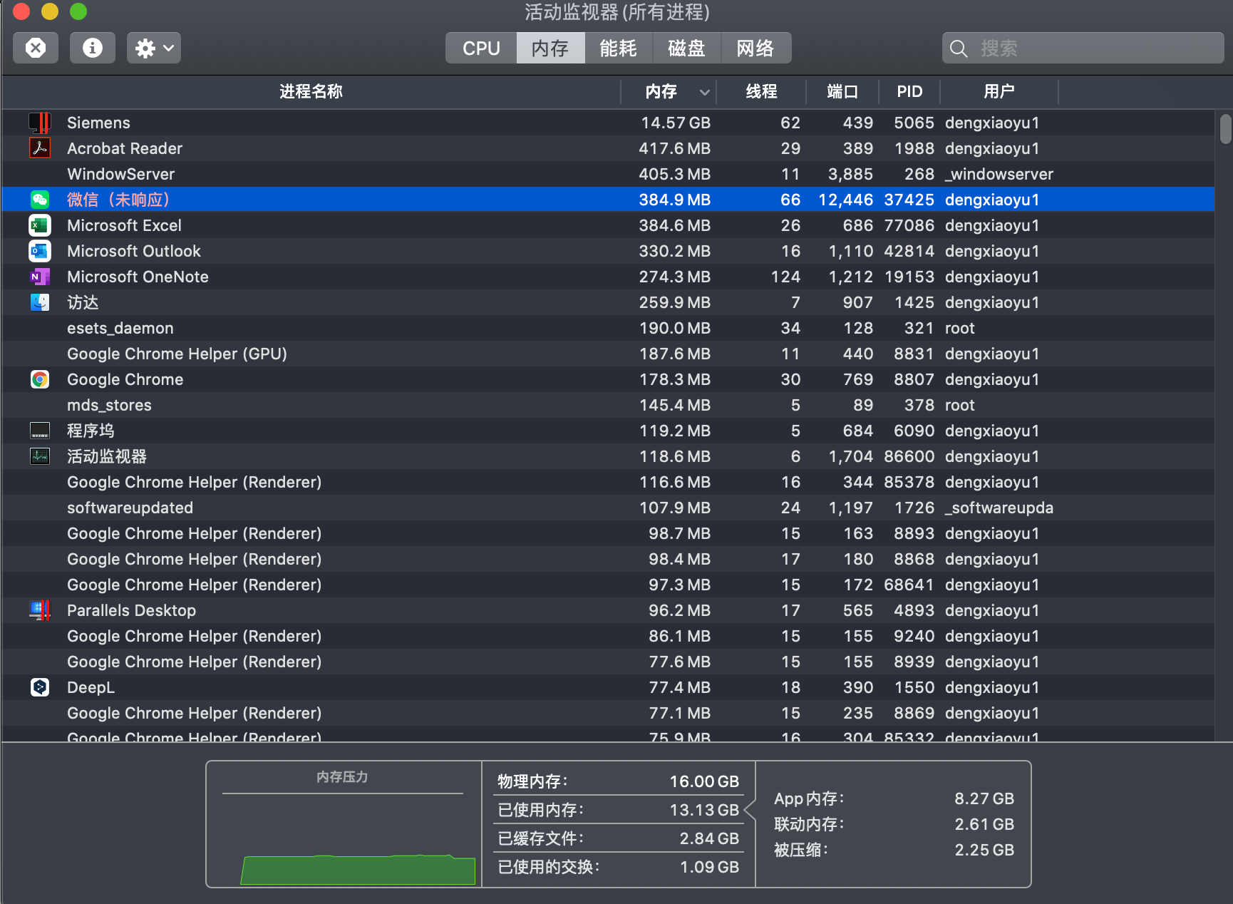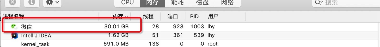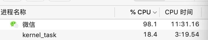 在手机上把文件转发到文件传输助手里边,在mac端保存文件,直接微信整体卡死,cpu和内存占用不断升高