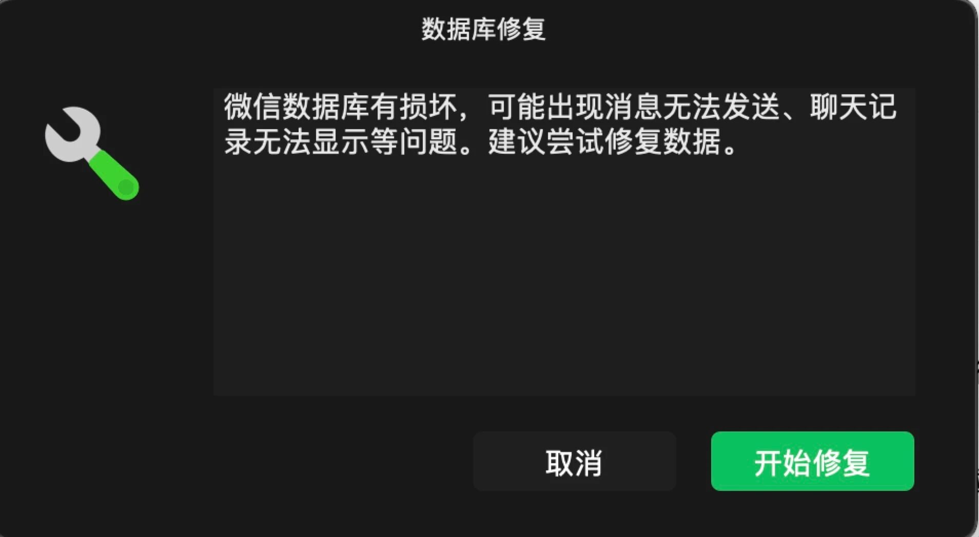 MAC版一直显示数据库损坏,但是修复时候一直无法修复。不知道什么原因?