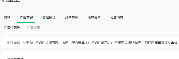 今天微信提示小程序广告组建被关闭,关闭原因是刷流量主,封禁十年,你干嘛不直接封号,逼着新手注销自己的小程序,官方是不是又装又立?
