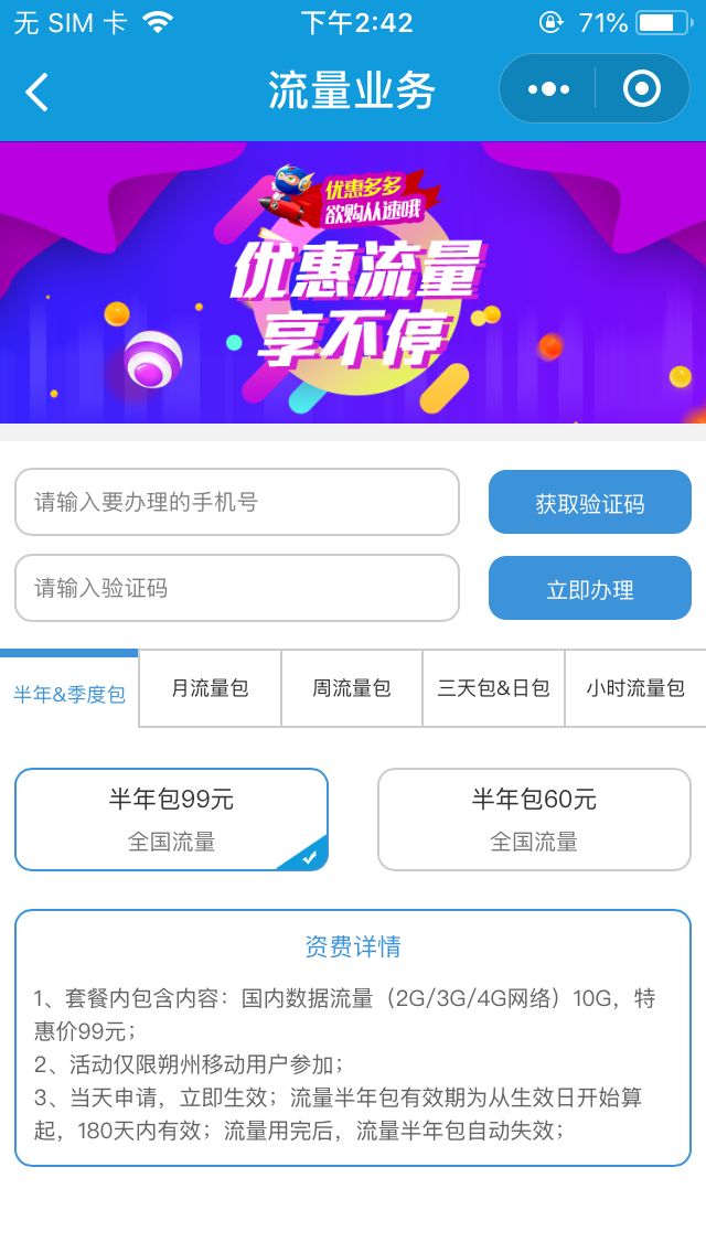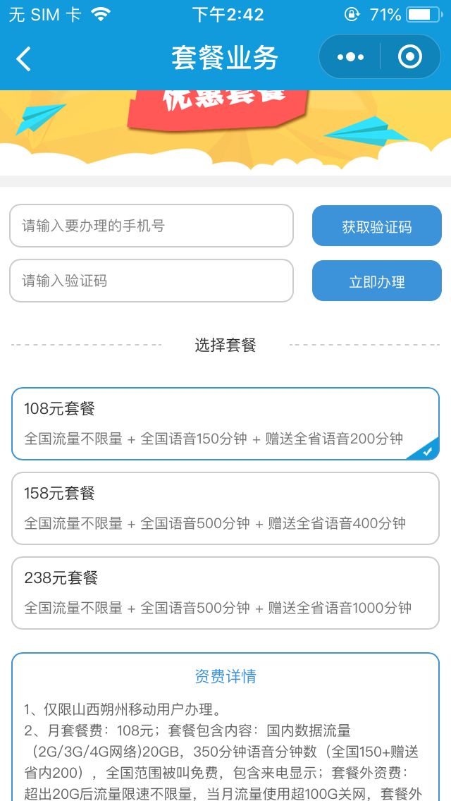 小程序存在手机套餐业务、流量业务的在线办理,属于提供网上营业厅服务,需选择IT科技-电信运营商类目,或请重新定位小程序功能。