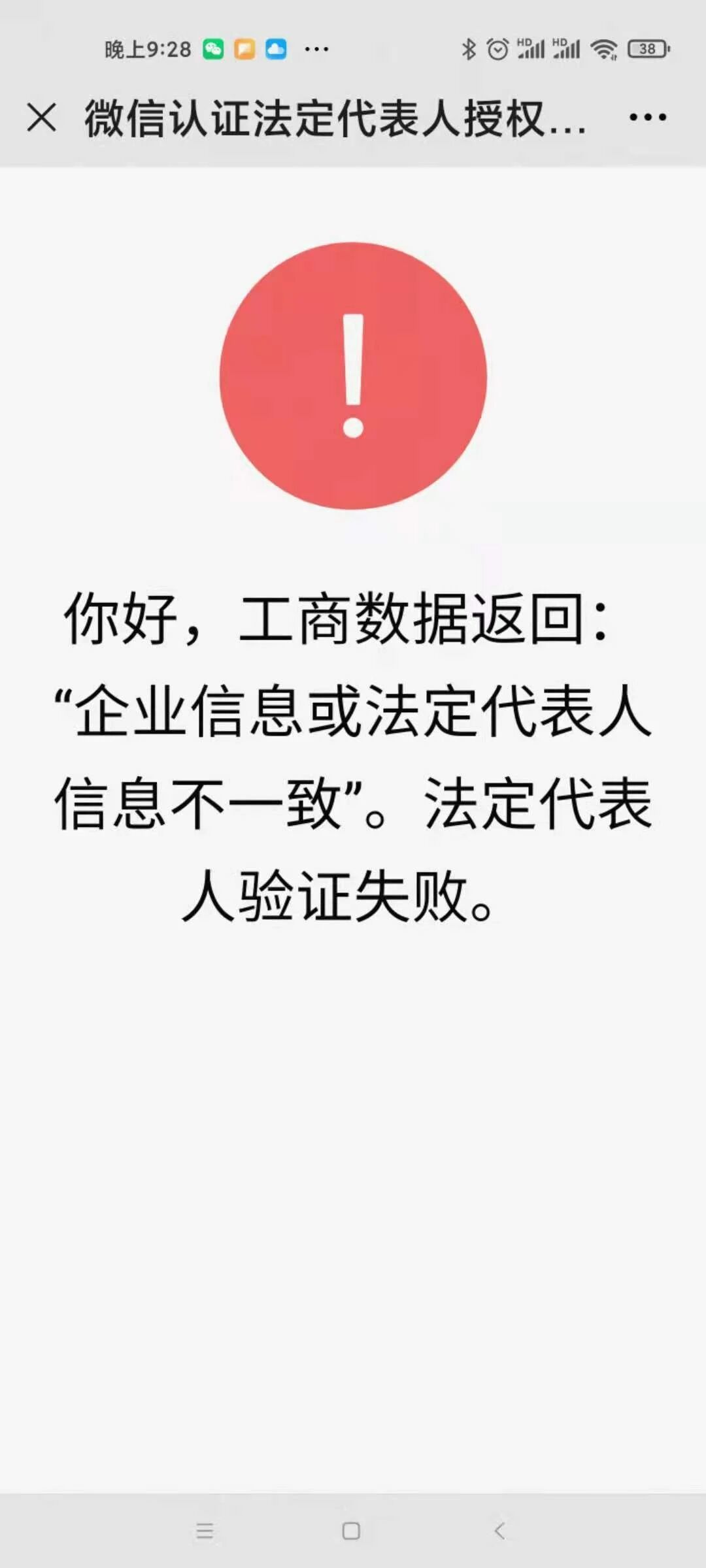 原始ID为 : gh_7dc5b604cee3 认证时一直提示企业信息与法定代表人信息不一致