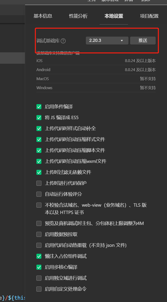 使用微信开发者工具每次打开项目,打开详情设置的时候,基础库都会自动变为2.4.0,且每次切换详情里面的配置按钮时,也会更新