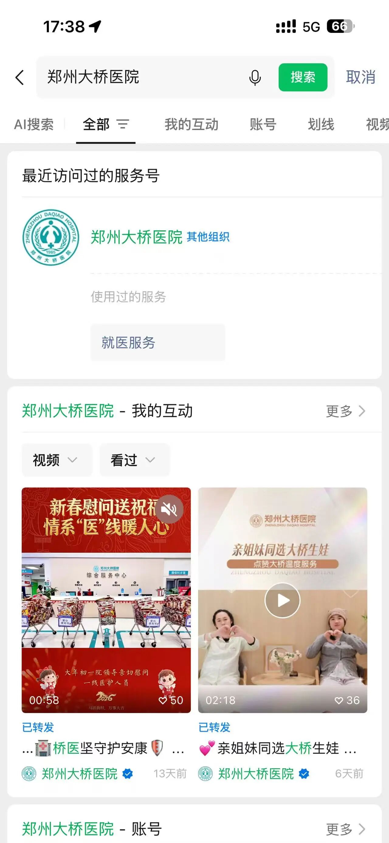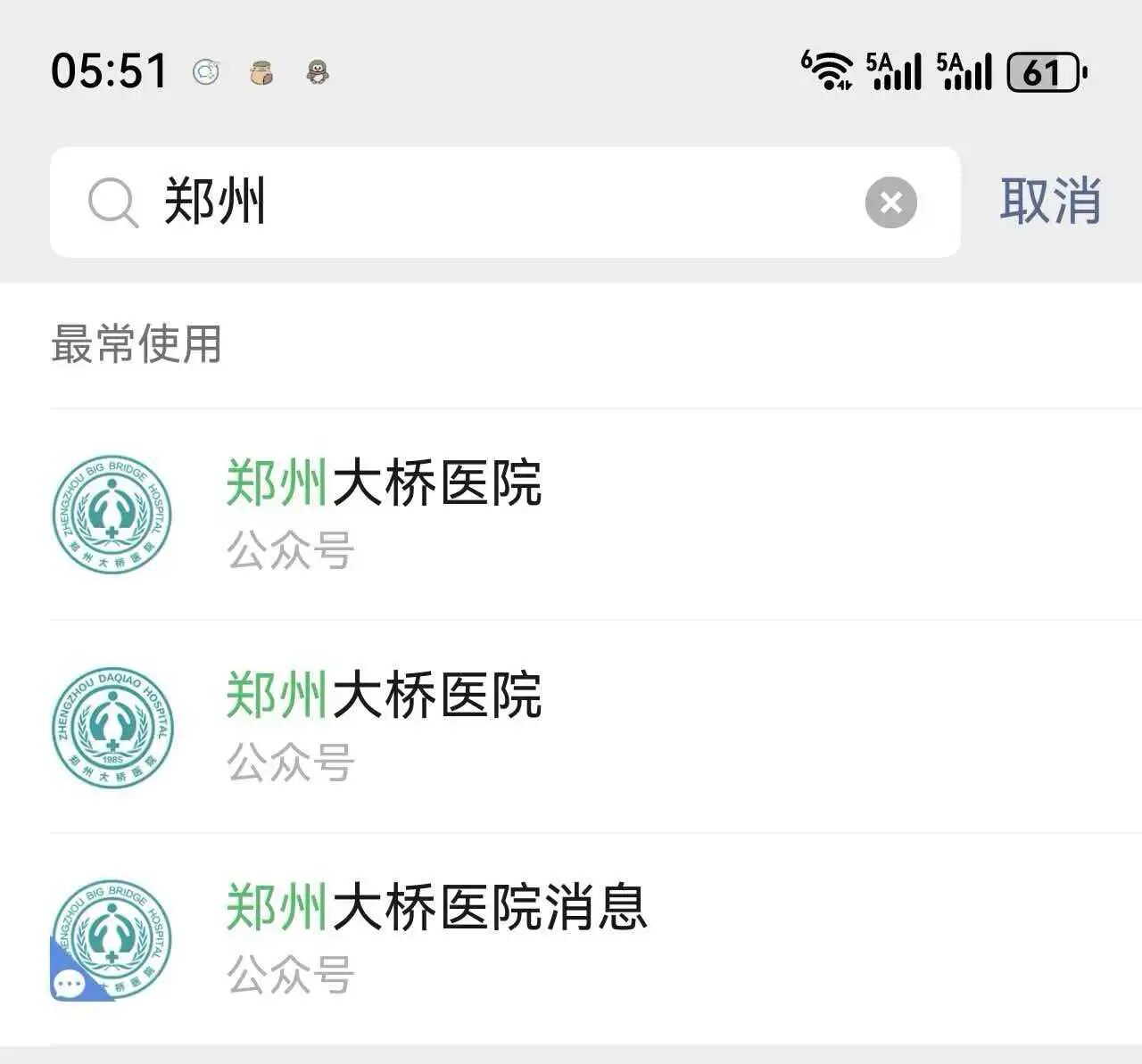 其他医院一搜索医院名字,上面显示服务号,下面会有医院的小程序、公众号显示出来