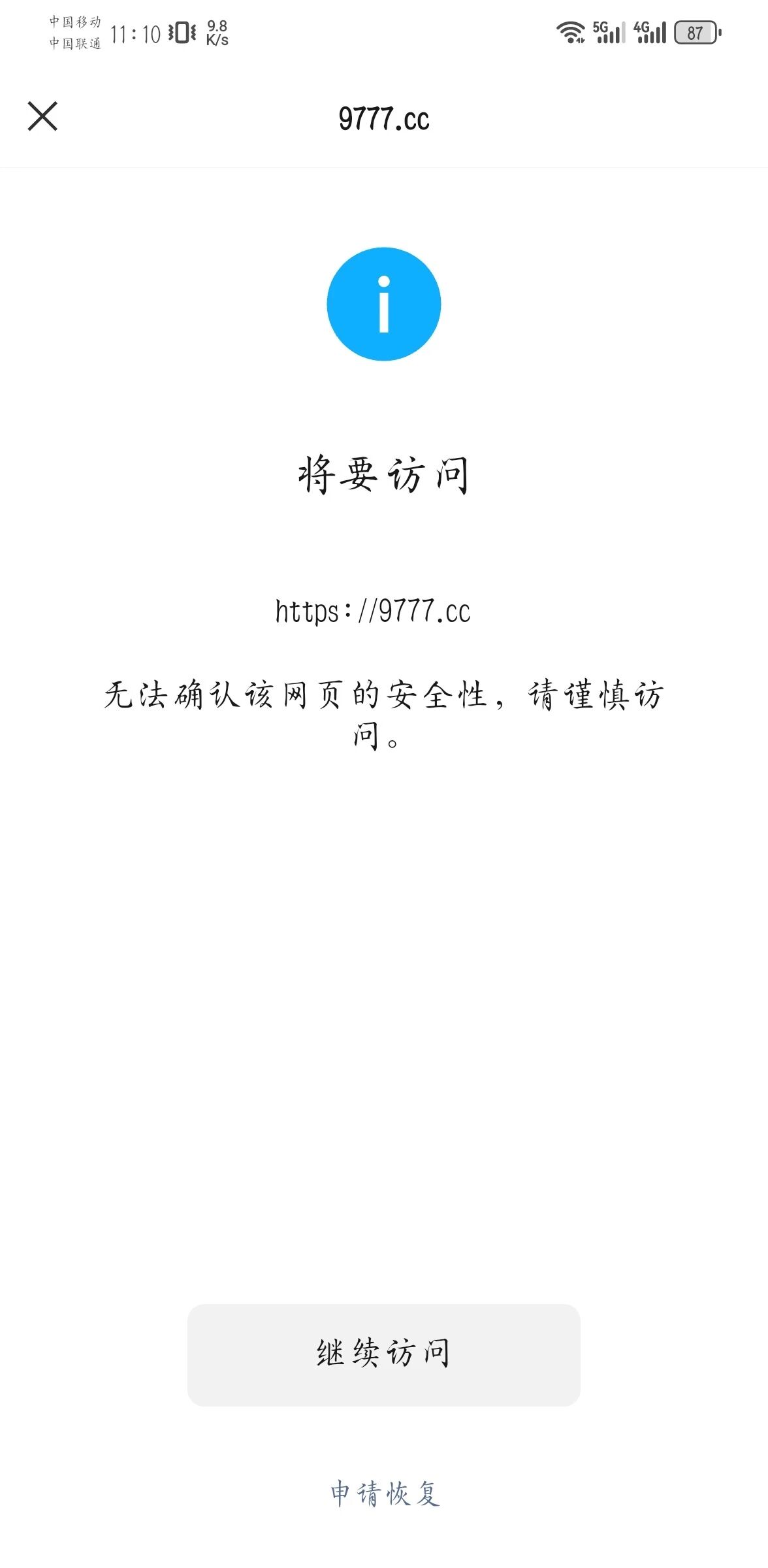 您好,微信内访问网站出现“无法确认该网页的安全性,请谨慎访问”的拦截提示,网站符合《微信外部链接内容管理规范》,腾讯安全网址安全中心检测网页没有不安全的内容,之前已经请求解除过一次并已经解除,今天访问又出现了,如果有问题,麻烦告知具体问题,请求核实后解除在微信内的访问拦截提示,谢谢。