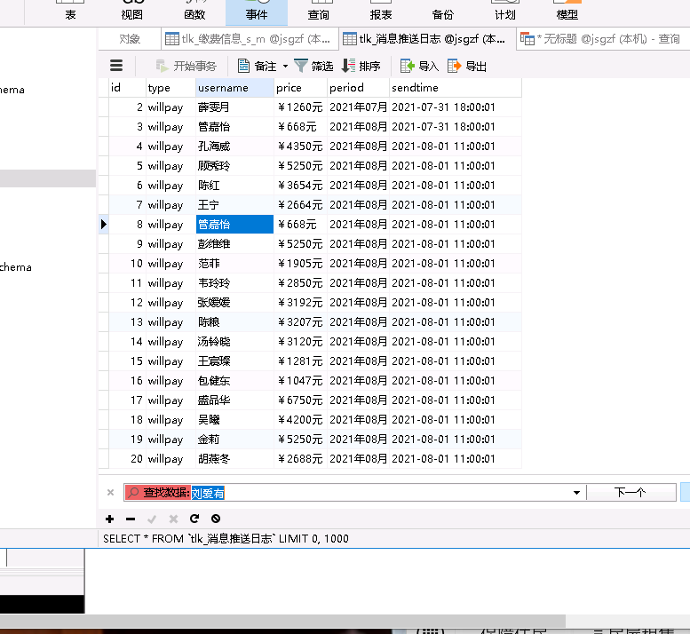 刘爱有这个人没有待付款账单,理论上会查不到数据,不会给这个人推送消息的。但是公众号仍然会在平台设定是每月月头11点推送消息给他。