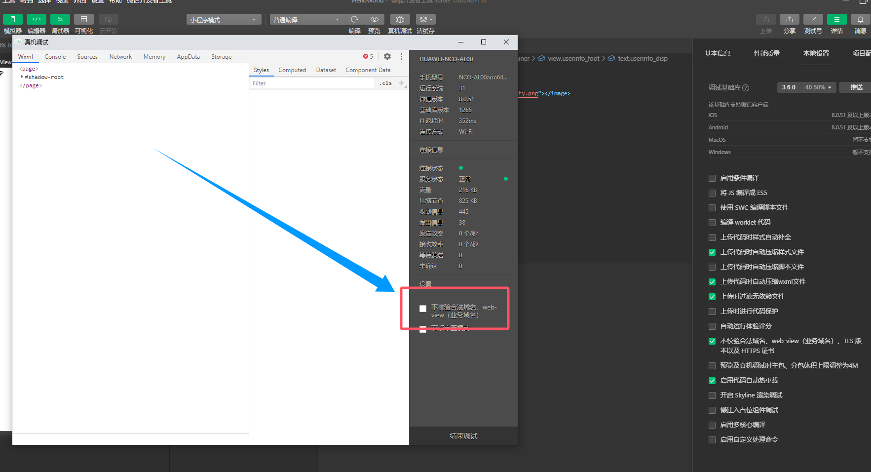 真机调试,你也要勾选不校验域名啊,否则肯定会无法requestIP地址请求的