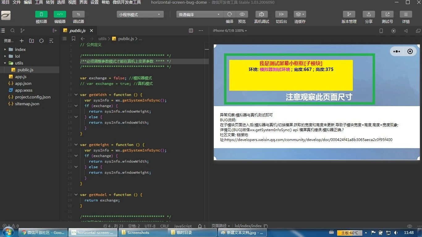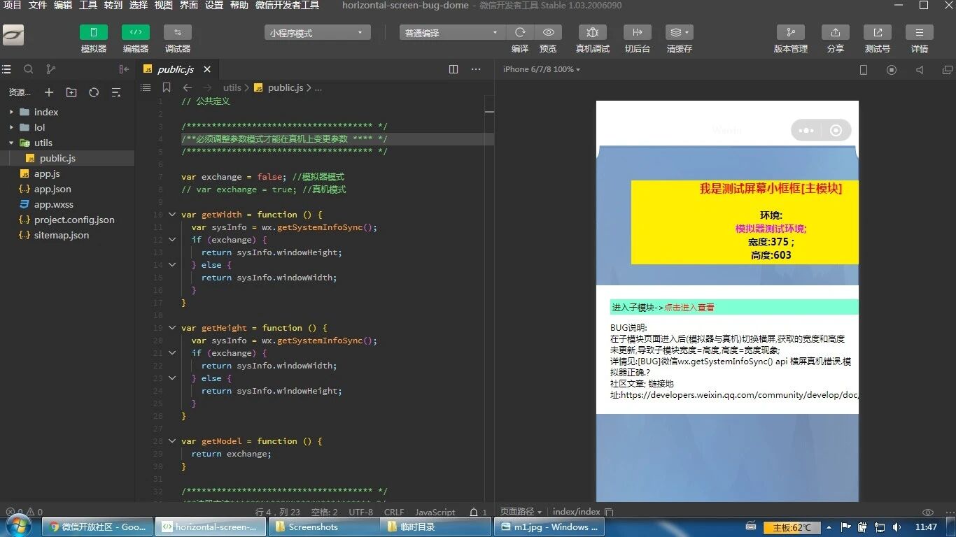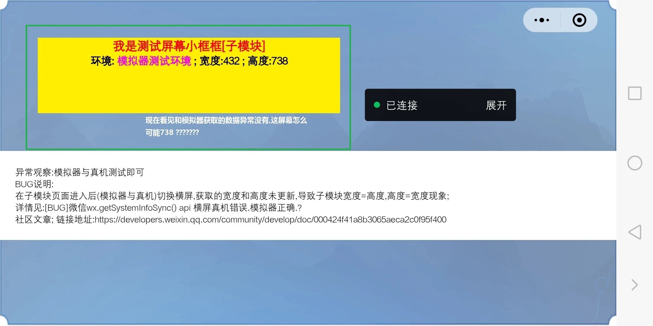 微信wx.getSystemInfoSync()或wx.getSystemInfo() 在执行横屏处理后,宽度和高度在真机上错误. 但在模拟器中显示正常.