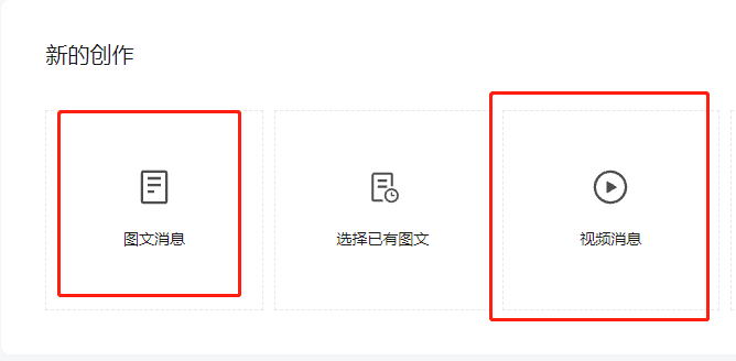 图一发布的是图文消息,图二中的视频指的是发布的视频消息。