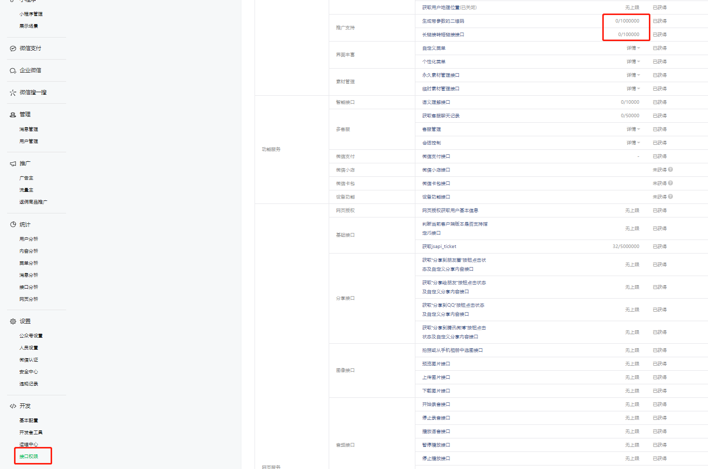 文档中说永久二维码数量总数是10万,哪里可以查到已经用掉的数量?重复请求同一个信息的永久二维码算多次还是1次?