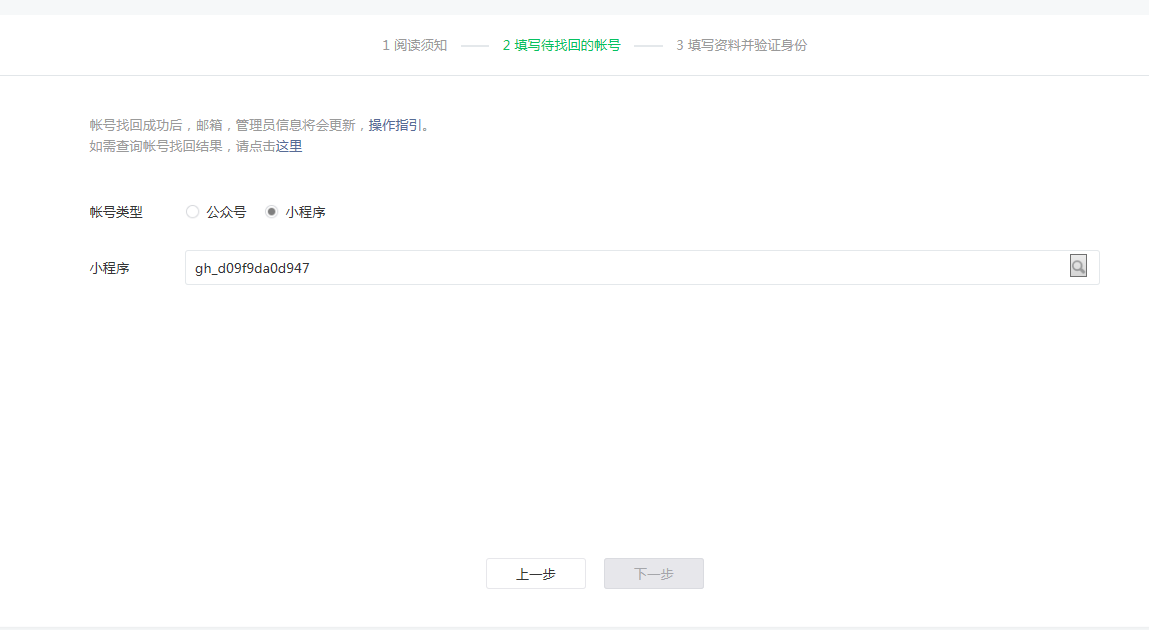 你好,输入小程序的原始ID之后点击搜索看看页面出现什么提示,另外把你需要找回的帐号复制粘贴下原始ID提供下。尝试更换浏览器试试