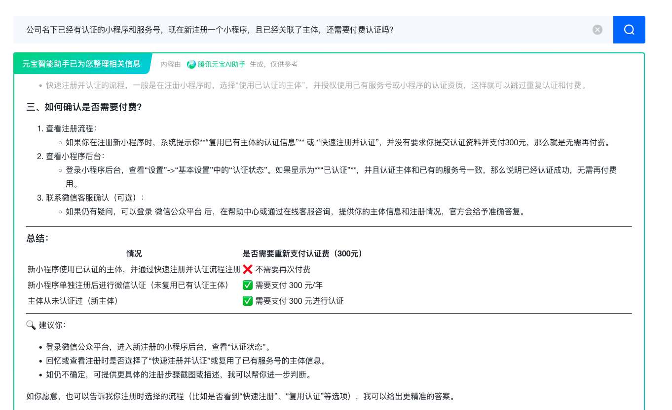 除了在已认证的非个人主体后台通过复用资质创建的小程序首次认证有效期和公众号同步外,其他方式注册或已注册的账号都需要单独认证,所有小程序账号微信认证到期后都需要单独年审。