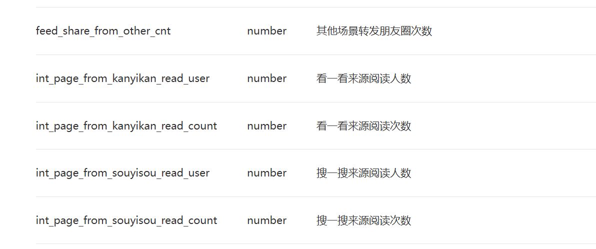 开发接口文档里显示包含搜一搜来源的阅读和分享统计数据