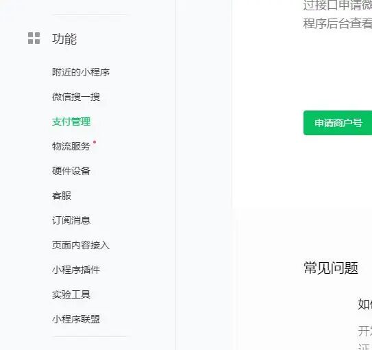 为提升小程序的实物购买体验,平台近期开始对部分小程序灰度升级小程序支付管理服务。新开小程序如被灰度“小程序支付管理”功能,需要在该页面申请商户号,并使用下述链接接口,不支持调用微信支付接口,文档地址https://developers.weixin.qq.com/miniprogram/dev/platform-capabilities/business-capabilities/ministore/wxafunds/Introduction.html