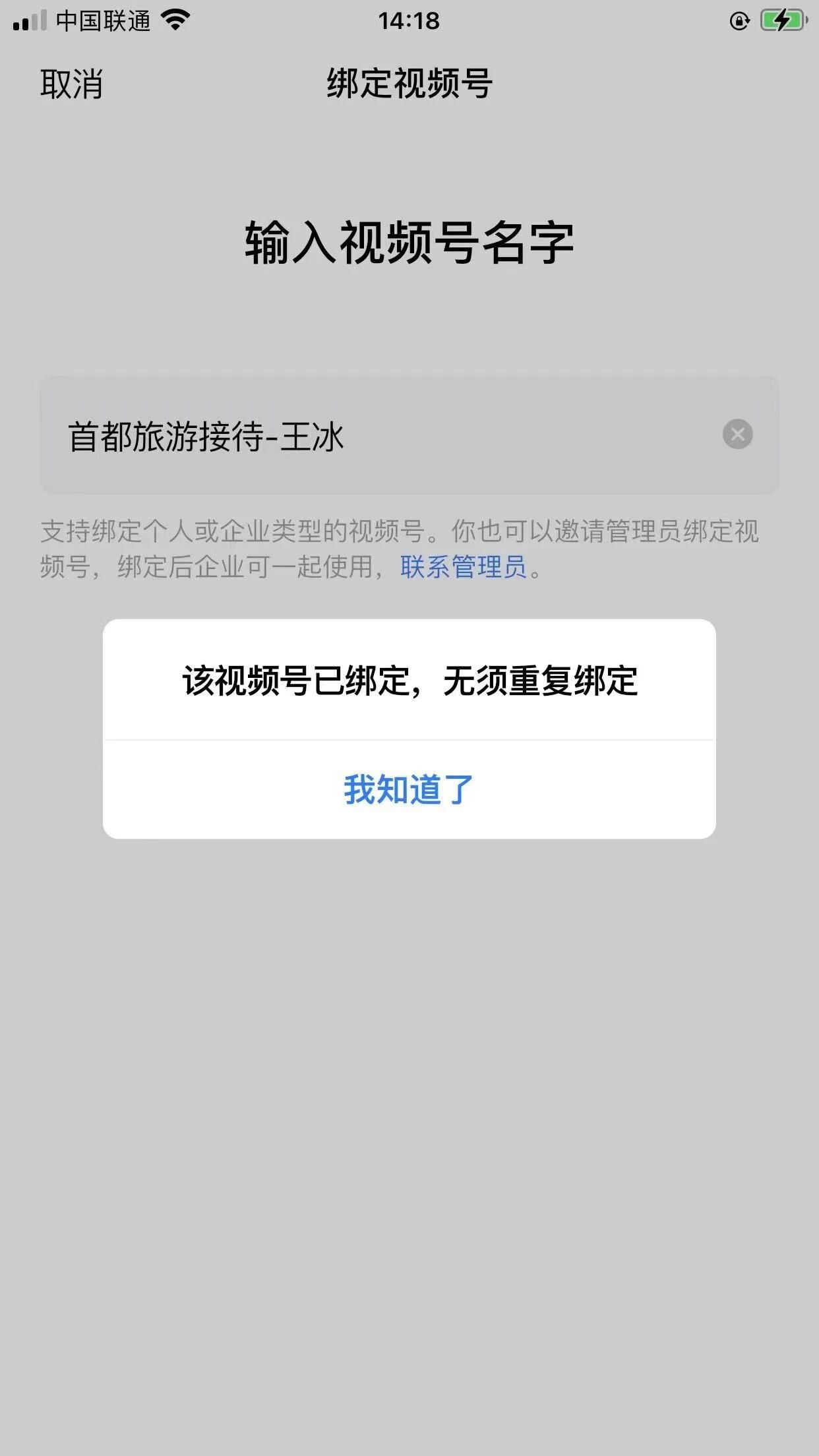10.10日上午,我一员工在视频号侧解除了与企业微信的绑定,导致企业微信配置的客服功能失效。我看到后重新回到视频号侧选择重新绑定企业微信,却一直不成功。我后面选择到企业微信端,利用超级管理员身份搬到该视频号,却显示视频号已被绑定,无需重复绑定。请微信后台技术人员,帮我解决一下这个问题。感谢。
