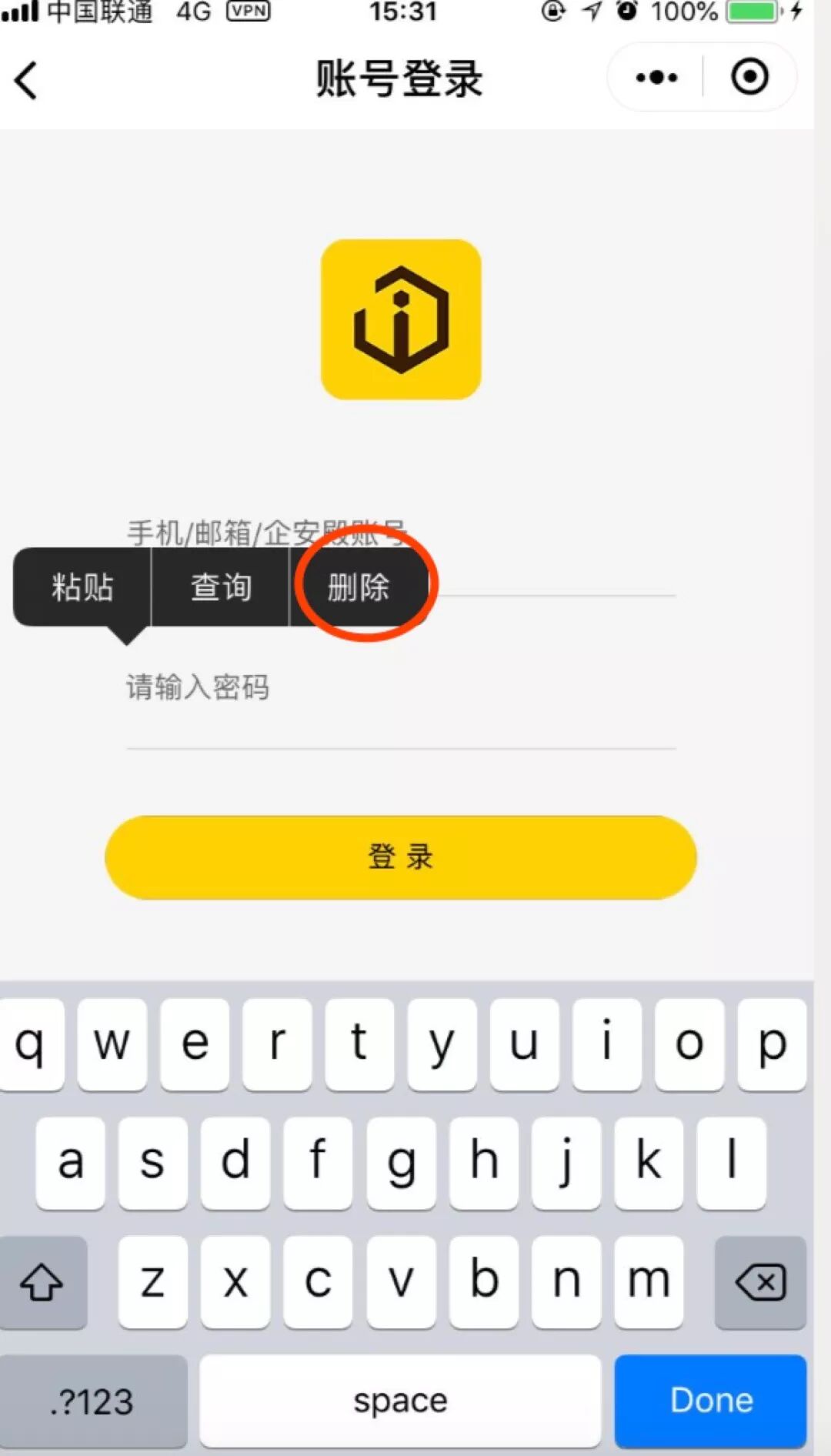 首次进入小程序,登录页面中的input组件长按出现默认的功能按钮中带有删除功能,点击删除小程序和微信崩溃