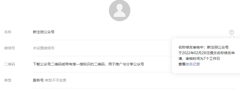 显示已经注册好了,怎么处理呀,名称后面没有修改入口,而且当时注册的时候名称怎么变成了“新注册公众号”