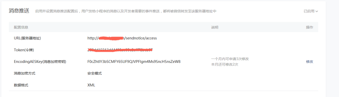 您好,我在配置了消息推送之后,没有接收到微信的事件消息能帮忙解惑么,感谢!下图是我配置的消息推送配置![]()