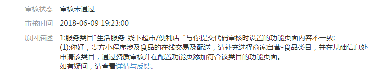 食品类目我上个月就添加了,还给我连续以这个理由拒绝两次,麻烦确认的时候认真点。我们也不涉及配送,我连快递选项都没开,都是来店自提。