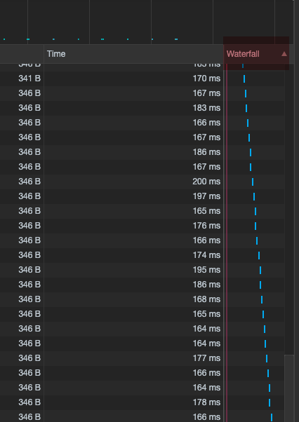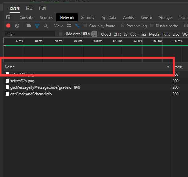 点最右边的waterfail排序,这个是按时间排序的。这样就不会按名称排序了。按正常的按调用接口的时间来排序。