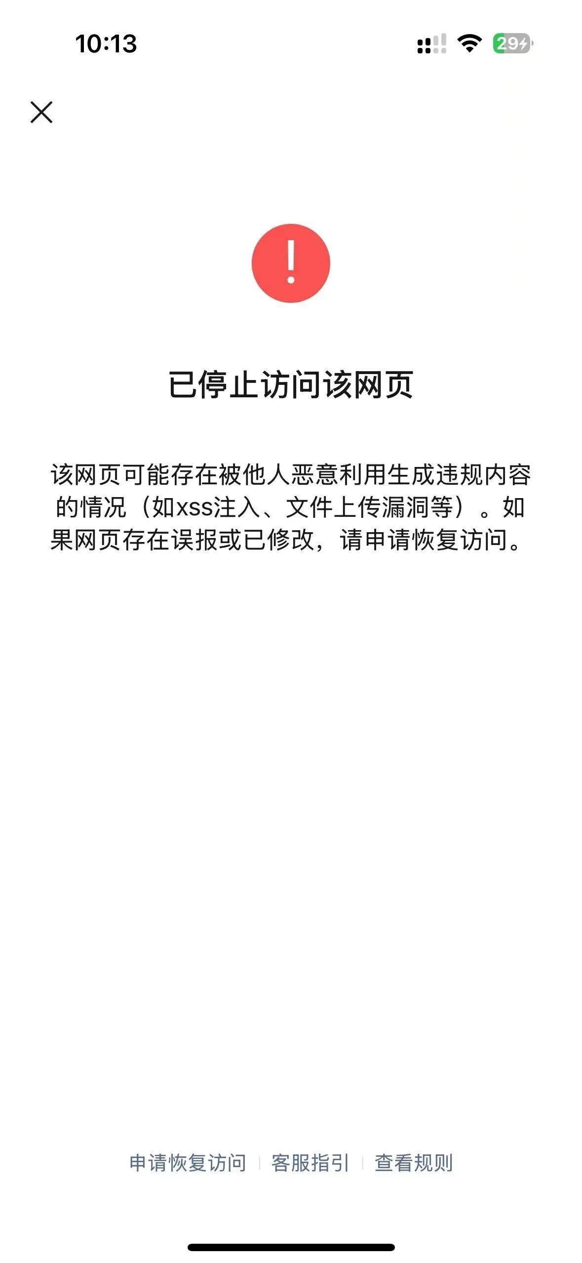 该域名之前搭建过模板网站测试功能,后被遗忘,可能搭建的模板有漏洞被劫持了,才会有这么个提示。今日该域名准备重新启用,域名早已打不开,发现微信内打开该域名显示如下:
