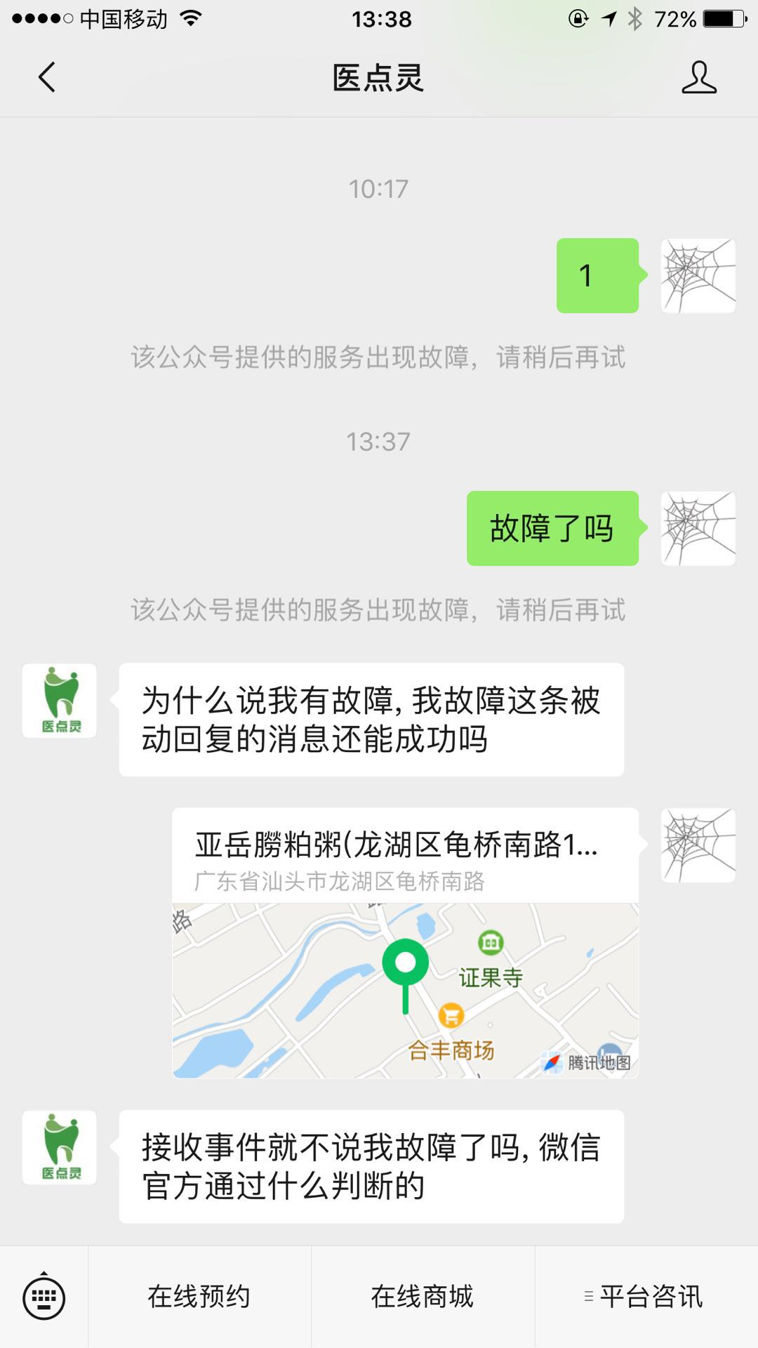接收普通消息 (文本/图片/语言等) 总会插入一句 , 说我们公众号提供的服务故障 , 但实际被动回复已经成功