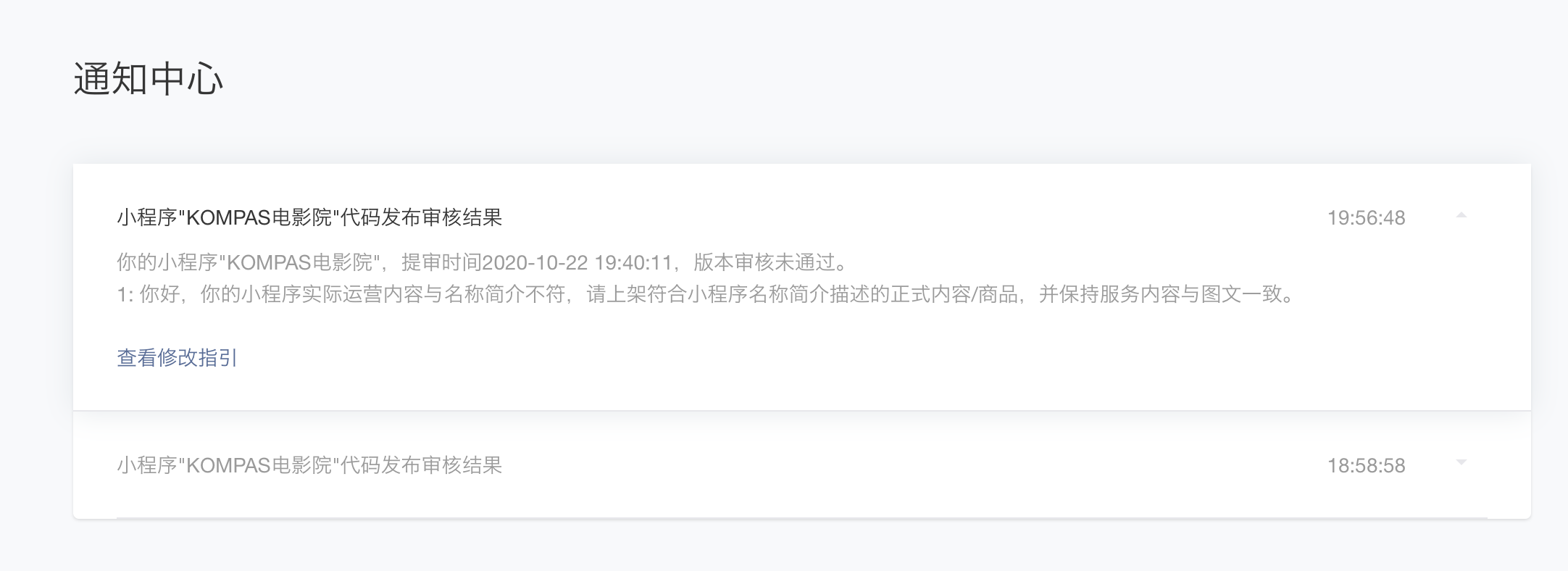 驳回原因:你的小程序实际运营内容与名称简介不符,请上架符合小程序名称简介描述的正式内容/商品,并保持服务内容与图文一致。