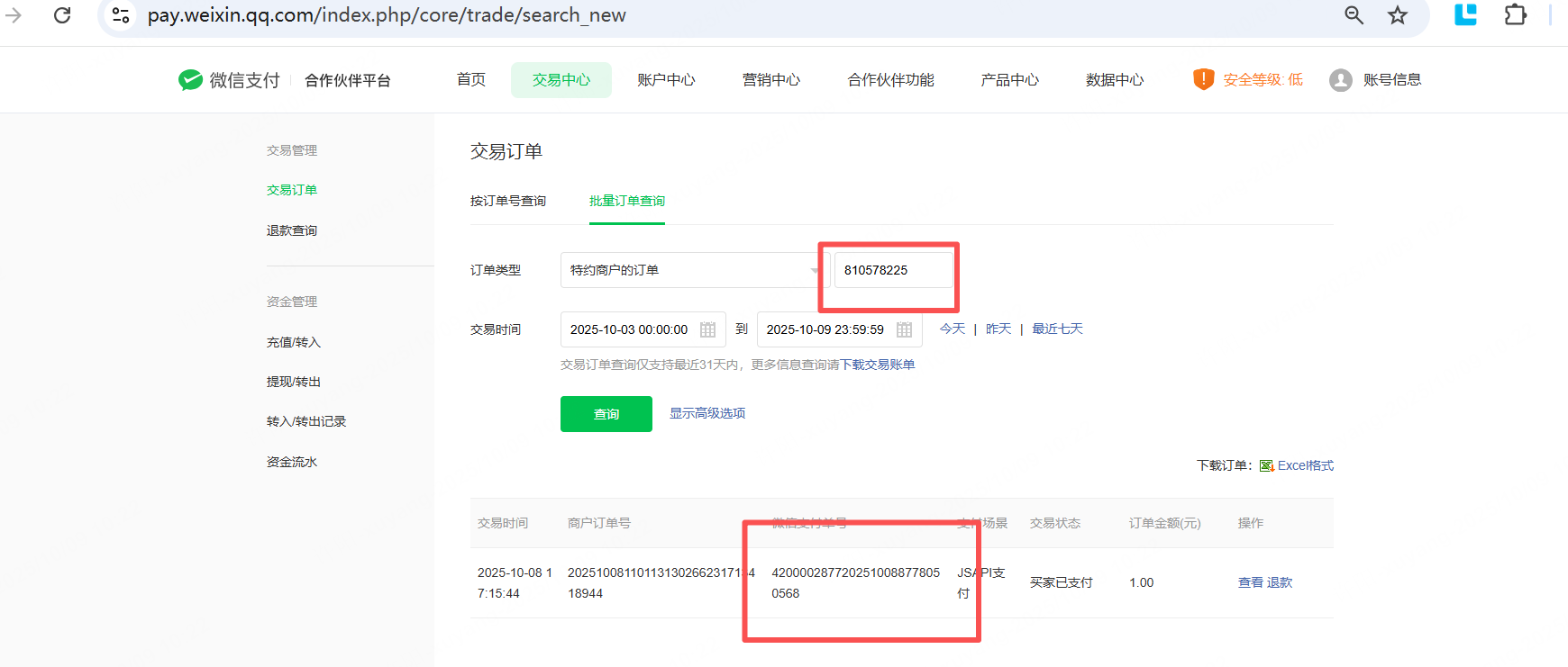 {"errcode":10060001,"errmsg":"支付单不存在 rid: 68e7161e-4f519e19-71388b71"}