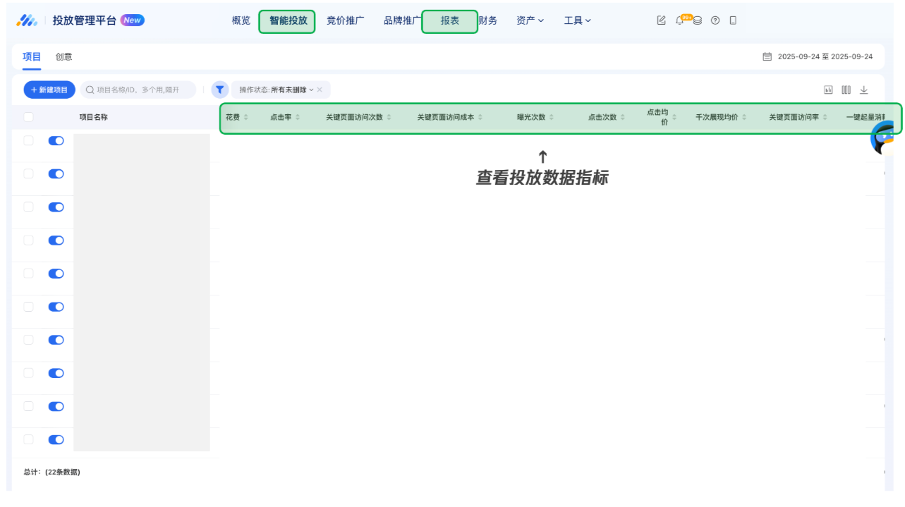 查询投放数据:可在投放账户的投放管理平台(https://e.qq.com/ads)项目/广告管理、报表处查询数据明细