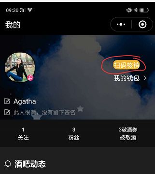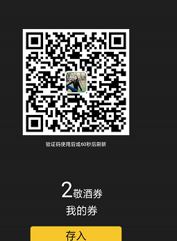 这个“敬酒”就是给别人买酒。酒吧商家的老板,会有“扫码核销”的功能,于是,他就会扫描二维码,把券抵扣掉,兑换等值的酒品。 就扫这个二维码核销券。