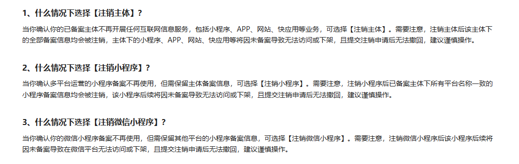 【操作上是不是选择“选择【注销微信小程序】”】选择这个对原主体备案影响最小,具体选择那个看你原主体备案需求了。
