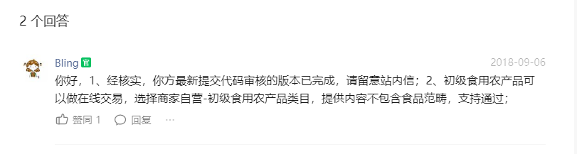 但我从其它客服那里看到初级食用农产品可以做在线交易,希望能重新审核一下。