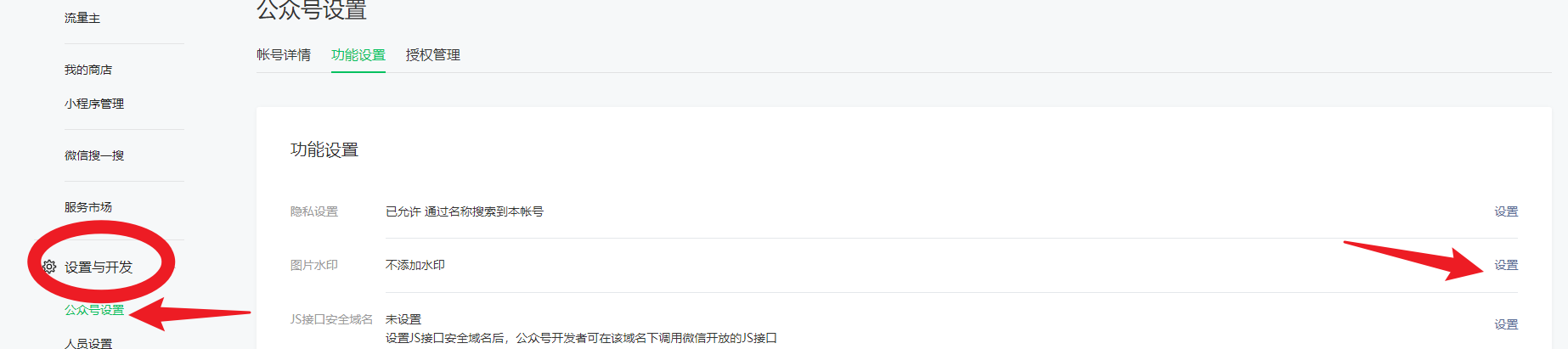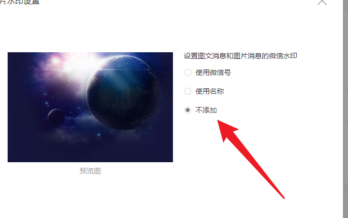 你好,设置与开发——公众号设置——功能设置——不添加水印。