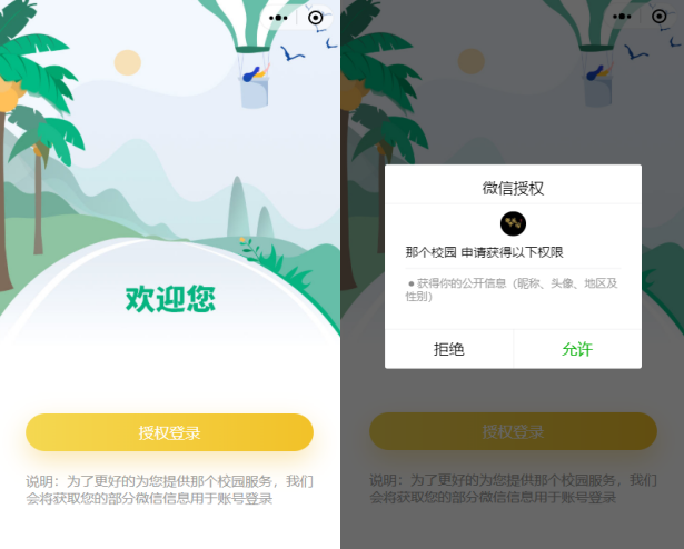 我们小程序是特定服务范围(学校),运营方式是任何人微信授权之后都可以进入小程序,但是使用功能的时候我们会引导去学生认证,我们有学生团队去审核他们是否为学生,是大学学生才会给通过,但不是学生也可以让他们进去浏览的。