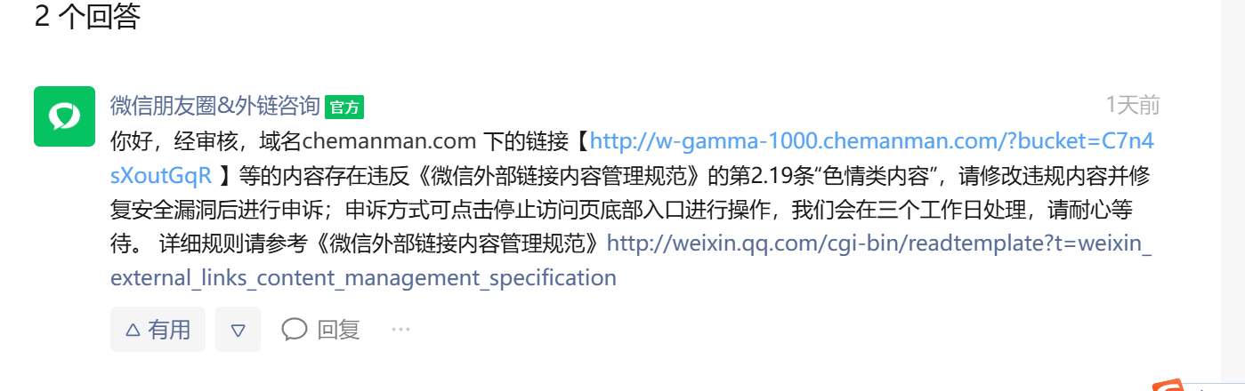 之前反馈我们说我们的网址有违规情况,把我们链接封了,我们做好了整改,微信怎么还不审核通过,是有BUG导致微信看不到我们整改好了吗?麻烦给尽快审核下,现在在微信上打不开我们的网址,影响微信收款、微信查单、微信查定位等