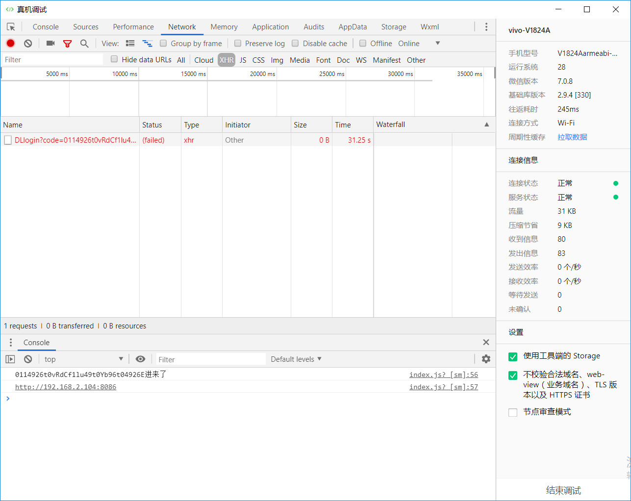 这个真机调试然后获取不到数据 然后xhr那个报错不知道怎么回事 我也进来了 console.log都能用 然后那个项目设置的不校验也选中了