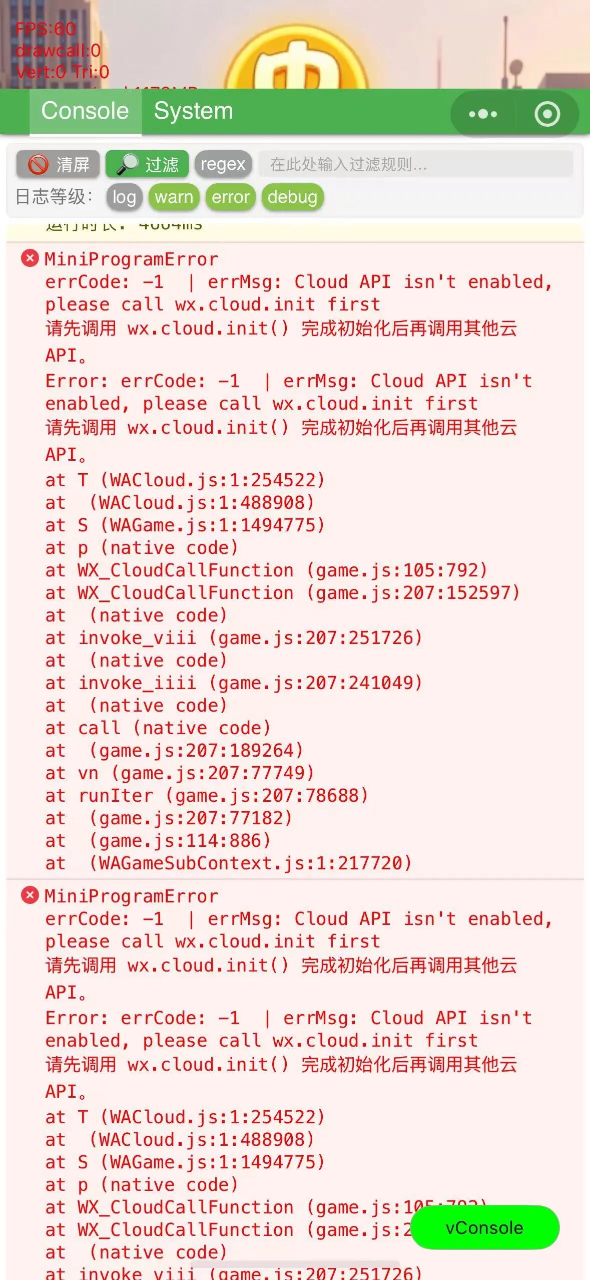 在WXCloud.CallFunction()时报错Error: errCode: -1 | errMsg: Cloud API isn't enabled, please call wx.cloud.init first