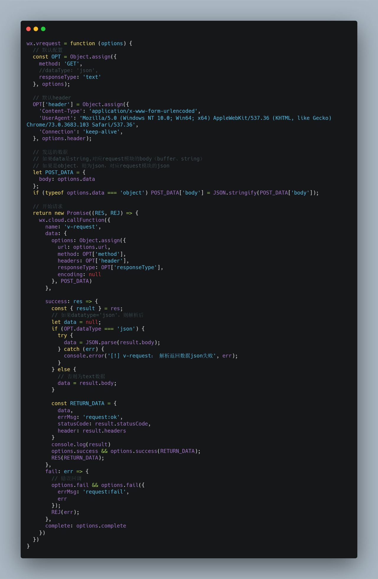 为了绕过HTTP的限制,使用了云函数v-request,但该函数设置responseType无效,得到的数据格式始终为text