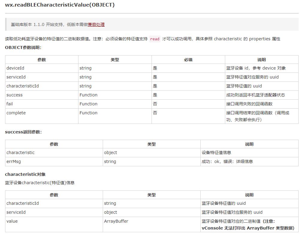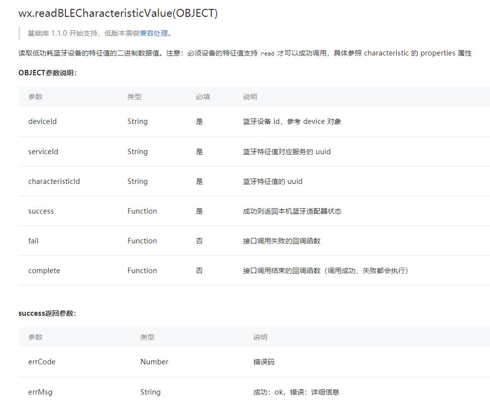 | 小程序 | 需求 | readBLECharacteristicValue | 工具 | 6.7.2 | 2.2.4 |