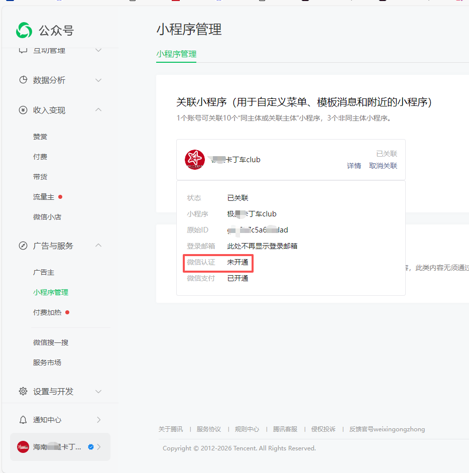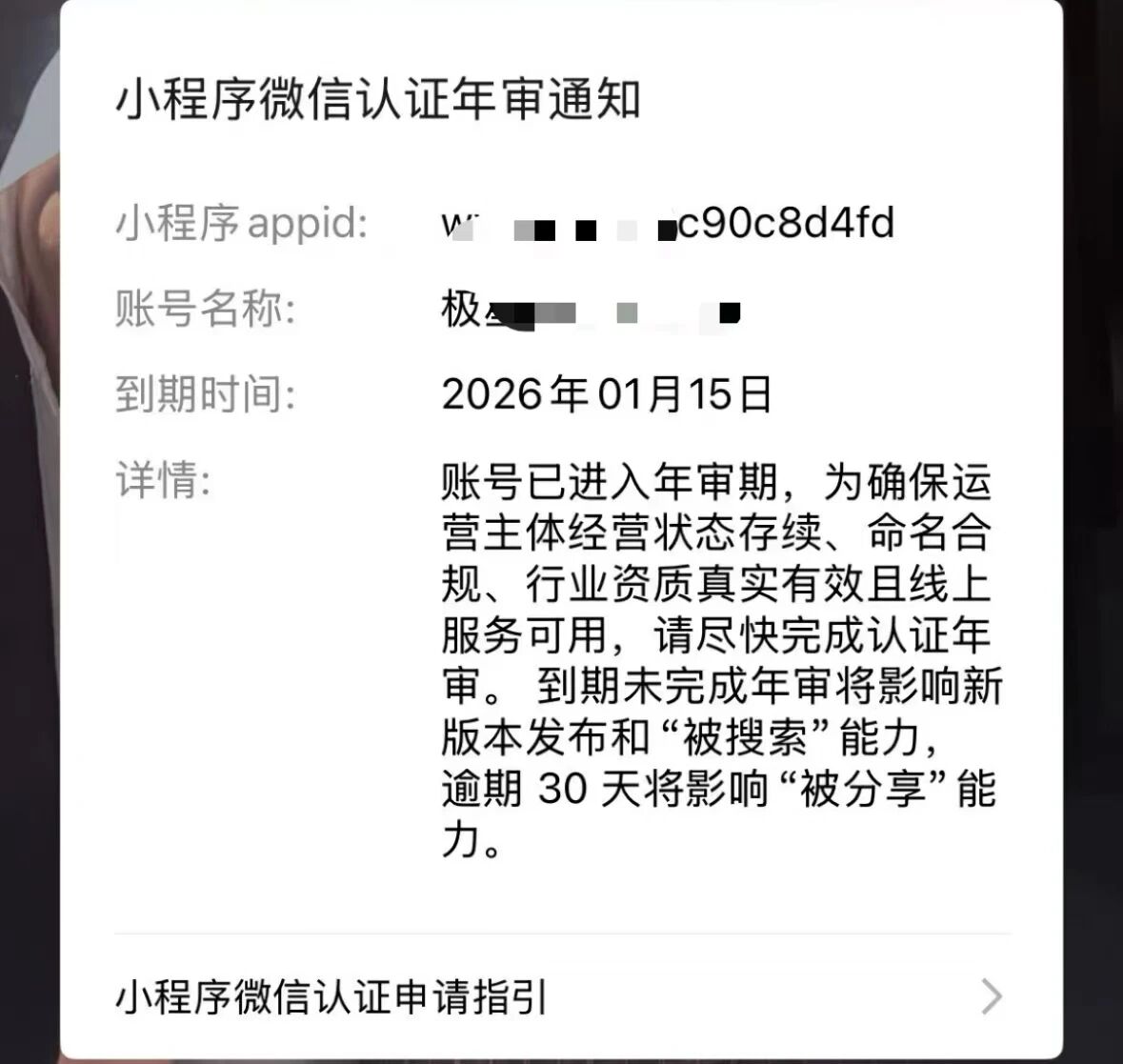 从年审通知时间和微信认证到期时间来看不属于同一个账号。