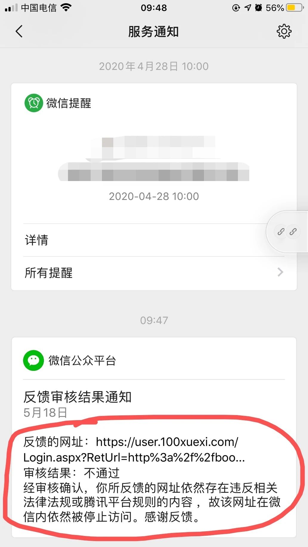 如果有违规,请问,违反哪条规定?仅仅是一个登陆入口网址,违反了什么法律法规呢?我们反复检查的了不知道多少遍,根本就不知道到底哪里出了错!微信就是毫无任何解释!